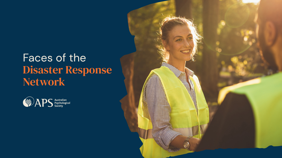 If you’re a fully registered APS member psychologist, you can join the DRN by completing the free Responding to disasters training. Becoming a DRN psychologist provides you with opportunities to engage in meaningful volunteer work, exclusive access to a series of free CPD valued at $500, a dedicated PsyCommunity channel to connect with like-minded peers and resources to support you in your role.